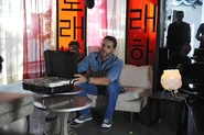 Paige sings something in Japanese onstage as Mike and Charlie arrive. Charlie teases Mike about how awkward he is, implying Mike has never had a girlfriend before. A random guy asks Charlie, “Who’s the geek?” To which Mike ‘politely’ pushes him away.